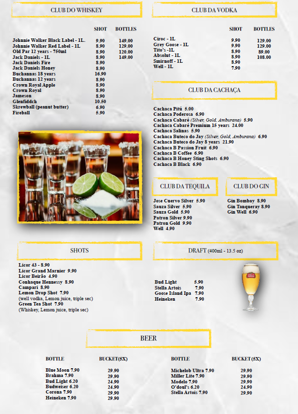 Light bites and appetizers, including Brazilian croquettes and empanadas, fit perfectly with the sociable setting, encouraging shared moments over flavorful, approachable snacks. On warmer days, refreshing drinks like the Mojito or a Stella Artois draft add a cool, crisp contrast to the rich flavors on the plate.